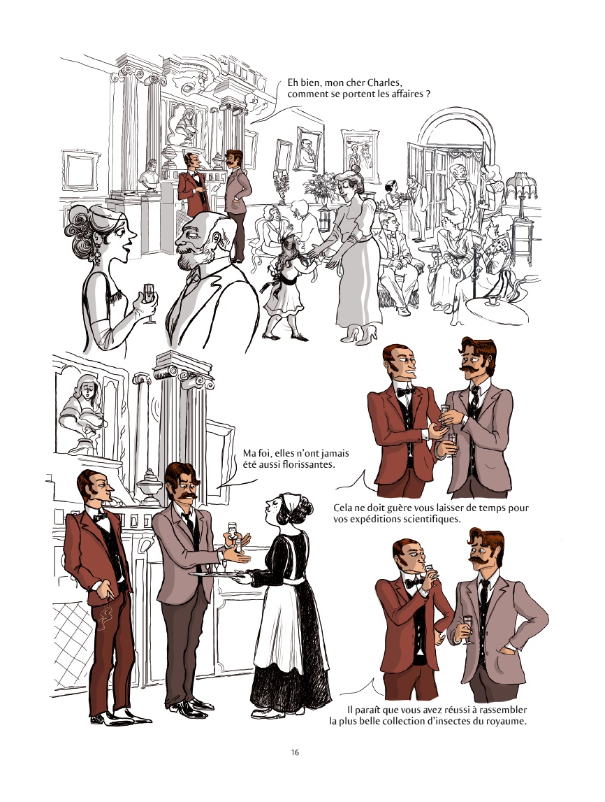 L'esthétique des personnages se prêtent bien à un public plus jeune et ado, une chance et l'emploi de la couleur qui isole les personnages principaux offre un projecteur habile qui guide facilement l'oeil. Le voyage sera simple et agréable.